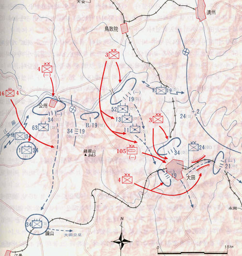 1950³â 7¿ù ÃÊ¿¡ Çѹݵµ¿¡ ÅõÀÔµÈ ¹Ì±º ºÎ´ëµéÀÌ ±×·¨´Ù. ´ëÇѹα¹ À°±º Àϼ± ¼Ò´ëµéÀÌ Àü¸êÀ» °¢¿ÀÇÏ°í ½Î¿ö¼ 5ºÐÀ» ¹ú¾î¾ß ÇÏ´Â °Í ó·³, ½º¹Ì½º ƯÀÓ´ëµµ Áß°úºÎÀûÀÇ »óȲ¿¡¼ Àû°ú ¸Â¼ 7½Ã°£À» ¹ú¾ú°í 34¿¬´ë´Â õ¾È¿¡¼ ÇÏ·í¹ãÀ» ¹ú¾ú´Ù. 24»ç´Üµµ ´ëÀü¿¡¼ Àû½Ã¿¡ ÈÄÅðÇÏ·Á´ø »ç´ÜÀåÀÇ Èñ¸Á°ú´Â ´Þ¸® 1±âº´»ç´ÜÀÌ µµÂøÇÏ´Â 7¿ù 20ÀϱîÁö ´ëÀüÀ» Áö۶ó´Â »ó±ÞºÎ´ëÀÇ ¸í·ÉÀ» ¹Þ°í À̸¦ ¿Ï¼öÇϱâ À§Çؼ 1°³ ±â°©À» Æ÷ÇÔÇÑ 3°³ »ç´ÜÀÇ Æ÷À§°ø°ÝÀ» ¹ÞÀ¸¸é¼ Á¤ÇØÁø ±âÀϱîÁö ´ëÀüÀ» »ç¼öÇß°í ±× °úÁ¤¿¡¼ ¸·½ÉÇÑ ÇÇÇØ¸¦ ÀÔ¾ú´Ù. Áö¿¬ÀüÀ̶õ ´Ù¸£°Ô Ç¥ÇöÇÏÀÚ¸é ÀÏ·ÃÀÇ ÆÐ¹è¸¦ ¹Ýº¹ÇÏ´Â °ÍÀ» ¶æÇÑ´Ù. Áö¿¬ºÎ´ëÀÇ ¿ªÇÒÀº ¸»±×´ë·Î ÀûÀ» ´ÊÃß´Â °ÍÀÌ´Ù. ÀûÀ» ÀúÁöÇϰųª ÀüȲÀ» µÚÁý´Â °ÍÀº Áö¿¬ ºÎ´ëÀÇ ´É·ÂÀ» ¹þ¾î³ª´Â ÀÏÀÌ´Ù. ÀüÅõÁغñ ż¼°¡ Ãæ½ÇÇß´Ù¸é ÃʱâÀÇ ÇÇÇØ¸¦ ´õ ÁÙÀÏ ¼ö ÀÖ¾úÀ»·±´ÂÁöµµ ¸ð¸£°ÚÁö¸¸, ¾î·µç À̵éÀÌ Ä¡¸¥ Èñ»ýÀûÀÎ ÀüÅõ°¡ ÀÖ¾ú±â¿¡ ½Ã°£À» Á¶±Ý¾¿ÀÌ¶óµµ ¹ú¾î¼ ±×µ¿¾È µµÂøÇÑ ÈÄ¼Ó ºÎ´ëµéÀÌ °á±¹ ³«µ¿° ¹æ¾î¼±À» Çü¼ºÇÒ ¼ö ÀÖ¾ú°í ´ëÇѹα¹À» Áöų ¼ö ÀÖ¾ú´ø °ÍÀÌ´Ù.