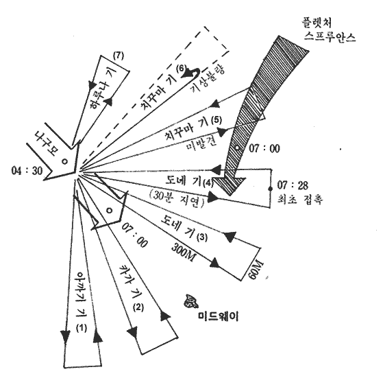 ¾öÈ£ ÀüÅõ±â¿Í ÀϺ»±ºÀ» ¹ß°ß ¸øÇÏ°í ±ÍȯÇÑ ´ë¼ö¸¦ »©µµ ¹Ì±ºÀÇ ¿ÀÀü 1Â÷ °ø°ÝÀÌ ³¡³¯ ¶§±îÁö ¹Ìµå¿þÀÌÛ¡ Æø°Ý±âµéÀº ÃÑ 56¼ÒƼ, 3°³ Ç׸ðÀÇ ³ú°Ý±â¿Í Æø°Ý±âµéÀº ÃÑ 93¼ÒƼ, µµÇÕ 149¼ÒƼÀÇ °ø°ÝÀ» °¡Çß´Ù. ÀϺ» Ç׸𸦠¸ñÇ¥·Î Ãâ°Ý¿¡ ÀÓÇÑ Ãâ°Ý´ë¼ö¸¦ ¸ðµÎ µûÁöÀÚ¸é 210¼ÒƼ¿¡ ´ÞÇÑ´Ù. ÀϺ»±ºÀÌ ±Ë¸ê´çÇÑ °ÍÀÌ ¿ÀÈ÷·Á ´ç¿¬ÇØ º¸ÀÌÁö ¾Ê´Â°¡? ÀϺ»±ºÀÇ ¿î¸íÀº 10½Ã 24ºÐ¿¡ °áÁ¤µÈ °ÍÀÌ ¾Æ´Ï¶ó, ¹Ì±º¿¡°Ô ÀÏÂġ ¹ß°ßµÇ¾úÀ» ¶§ ÀÌ¹Ì Á¤ÇØÁ® ÀÖ¾ú´ø °ÍÀ̳ª ´Ù¸§ ¾ø´Ù.